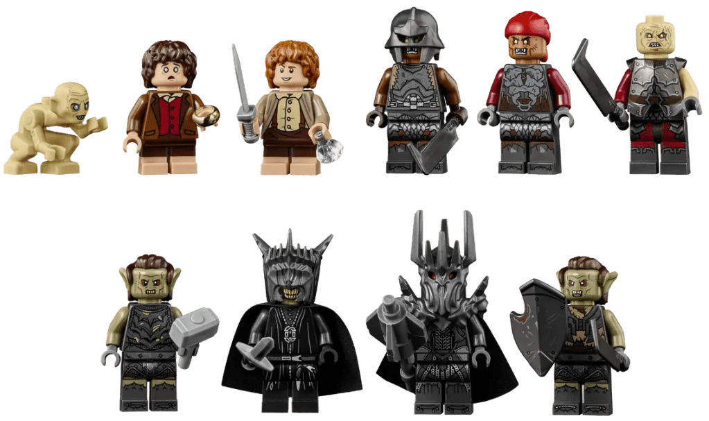 With that being said the Minifigures all look great and this is the only set currently being sold that contains Sauron – Alongside unique Frodo and Samwise prints.
