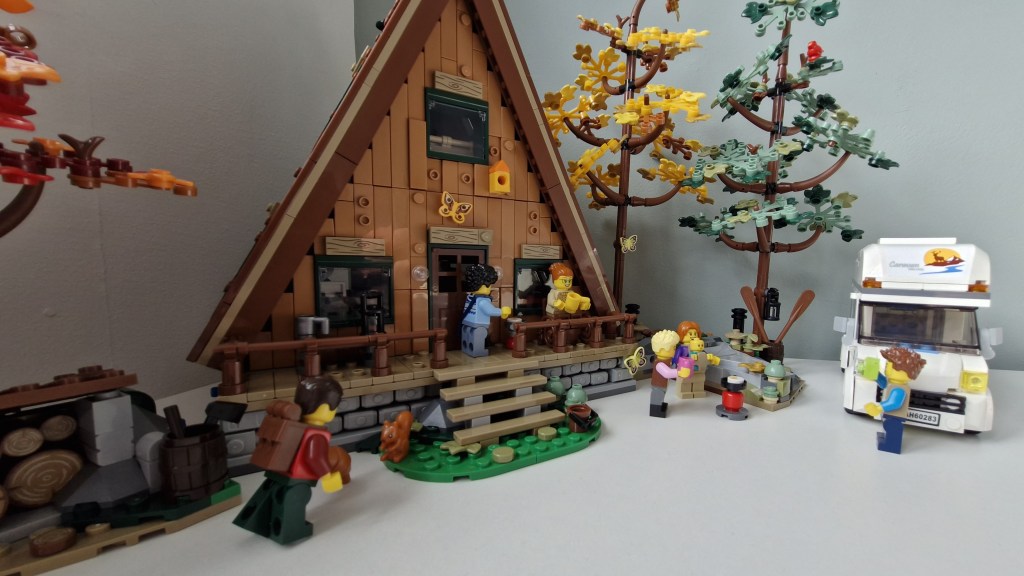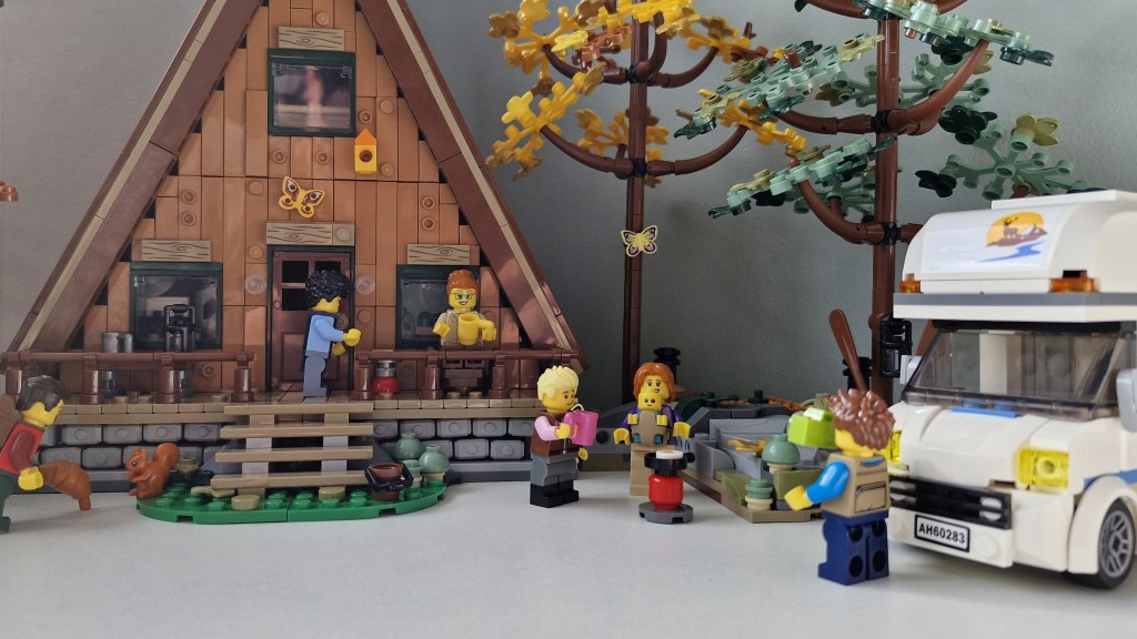 Speaking of camper vans – The A-Frame Cabin goes very well with Lego’s numerous camping themed sets. I also own set no. 60283 Holiday camper Van, and the cabin pairs extraordinarily well.