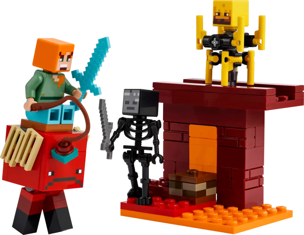 Containing 99 pieces, one Alex Minifigure, a Wither Skeleton, a Blaze, and a Strider.