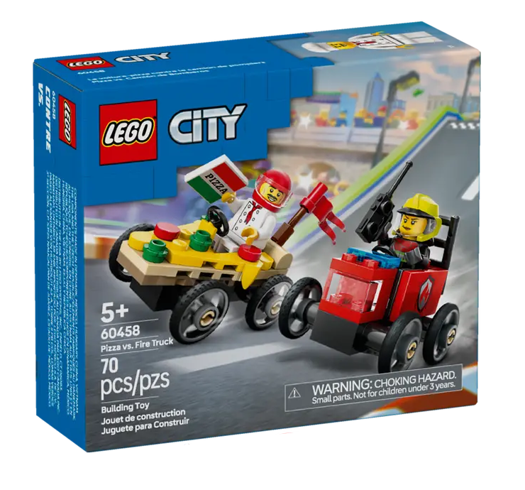 - 60458 – Pizza vs. Fire Truck Race Car Pack – £8.99 / $9.99 / €9,99