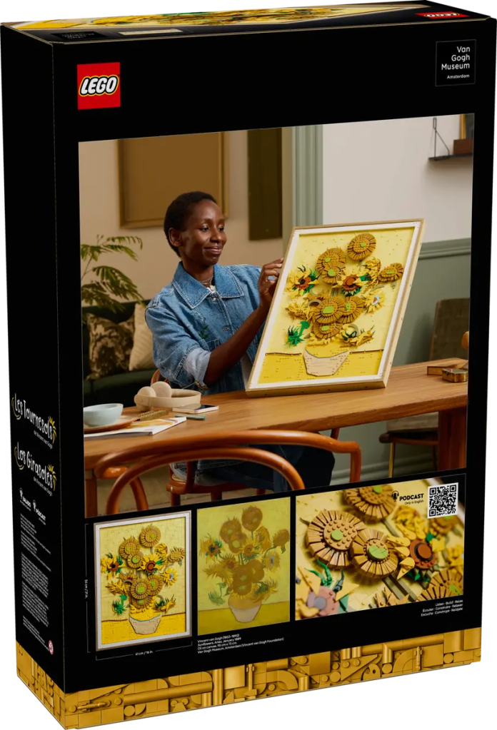 31215 Vincent van Gogh – Sunflowers also features a printed tile bearing Vincent’s famous signature.