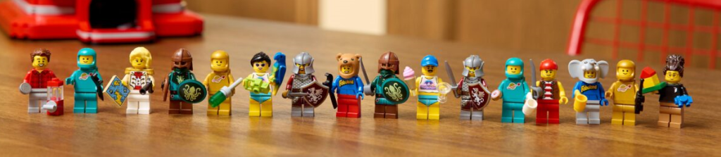 Although it’s not the best quality – in the LEGO promotional video you can see all 16 minifigures lined up. The figures pay homage to many iconic LEGO themes, including, Castle, Classic Space, Pirates, Fabuland, and even Paradisa. Also included is a minifigure rendition of the original fan designer.