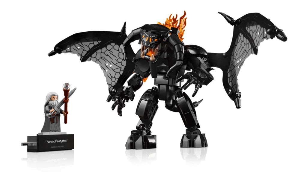 Those with a good eye should spot that the Balrog’s wings are the same piece used in the controversial Lord of The Rings: Fell Beast gift with purchase. The Fell Beast gift was billed as a gift for purchasing 10333 Barad-dûr (£399.99) – however, due to limited stock multiple fans reported missing out and not receiving the set.