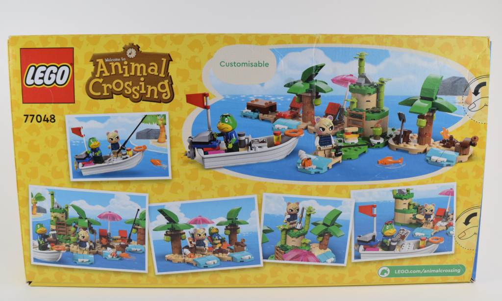 The set comes packed in a vibrant, colourful box, sporting the LEGO and Animal Crossing logos side-by-side. The front shows off the completed set superimposed on typical Animal Crossing new horizons graphics. The back of the box, however, details how the set is customisable and showcases some of the possible island configurations.