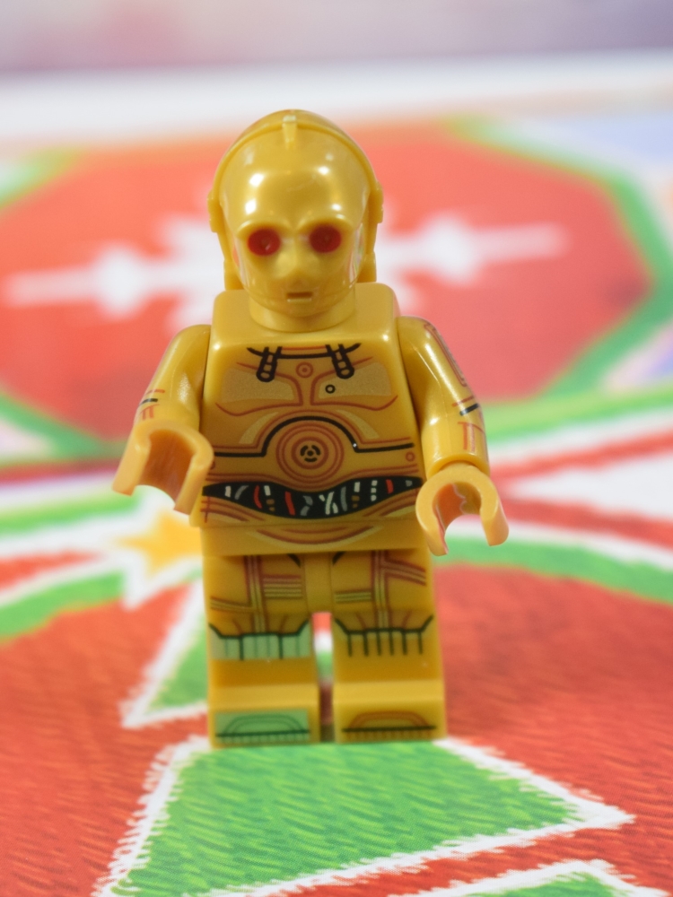As far as I can tell this version of C-3PO is actually unique to this set. The printing looks great, although it is a little disappointing not to see a proper dual-molded silver leg. I was surprised not to see any holiday printing / elements as typically the popular characters are a shoe-in for this.
